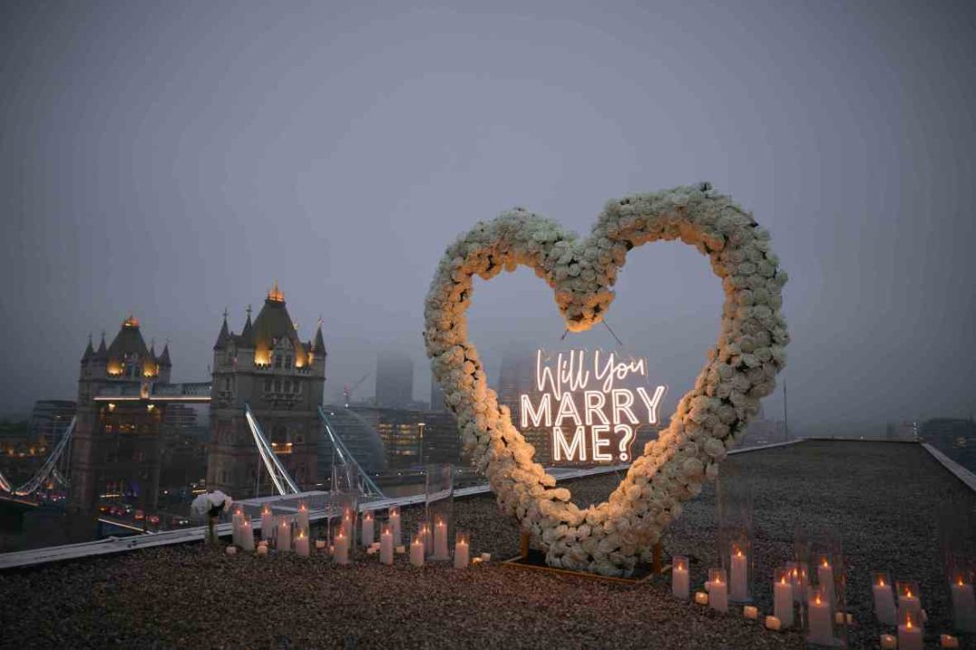 Enter the rise of “proposal planners” — professionals who help to curate these moments. The American company The Yes Girls was set up over a decade ago and bills itself as the original proposal planner. The owner, Riley Canty, says that budgets range from $15,000 to $200,000 for larger-scale productions: “We can bring to life a previous memory, create custom keepsakes, set up cold sparkler fountains or curate flower-heavy spectacles. That is where the cost really comes in — couples will spend $70,000 on flowers alone.”